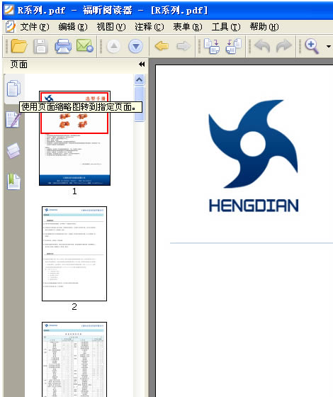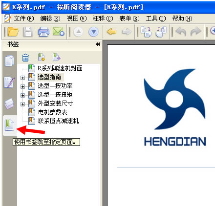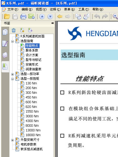 4: 打開一個PDF文件後,本例以打開 恒點傳動公司的R系列産品爲示範,看下軟件的左上角 ,如下圖: