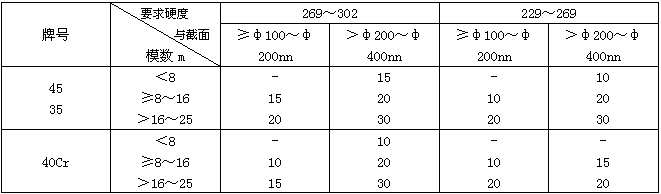 5.2.2齒輪毛坯淬火冷卻時,介質溫度應控制在 :水溫≤40℃;油溫≤80℃。