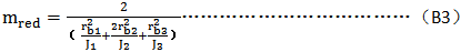 此時,假定内齒圈的質量爲無窮大,因此,誘導質量等於行星齒傳輸線的當量質量 ,mred由式(B2)確定: