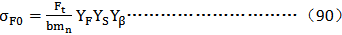 式中:σF0——齒根應力的基本值,N/mm,對於大、小齒輪應分别確定。