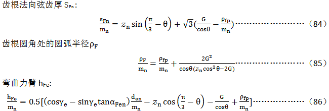 齒形系數YF由齒根危險截面的法向弦齒厚SFn與載荷作用在外齒輪齒頂的彎曲力臂hFe確定。