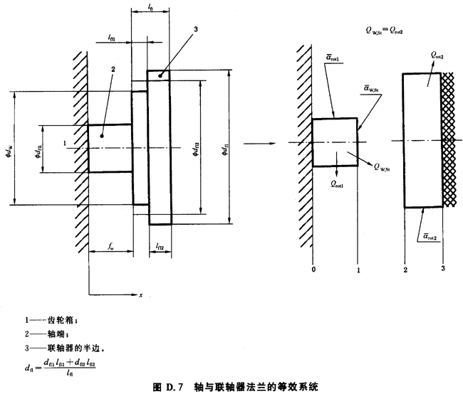 橫截面積Aq,sh與Aq,fl根據當量直徑dsh和dfl分别計算(見圖D.7)。相當於從軸到聯軸器的熱流的表面熱傳導系數α*sh,face由以下關系式計算 :
