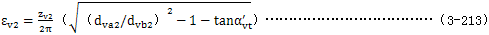 式中εv­——齒頂重合度,取εv1­或εv2­中的較大者,εv1­及εv2­由公式(3-212)及(3-213)確定。