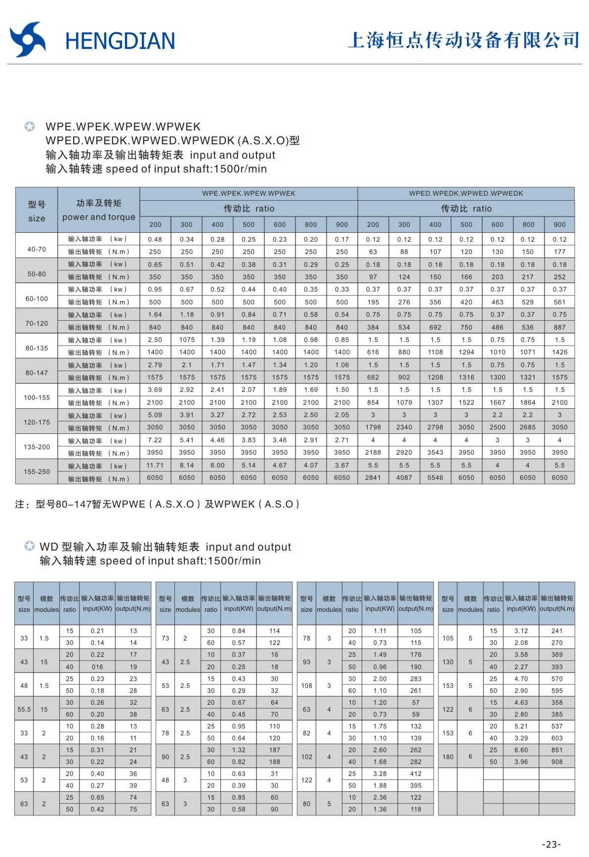WD型減速器傳動比及輸出轉矩表(JB/ZQ4390-79)