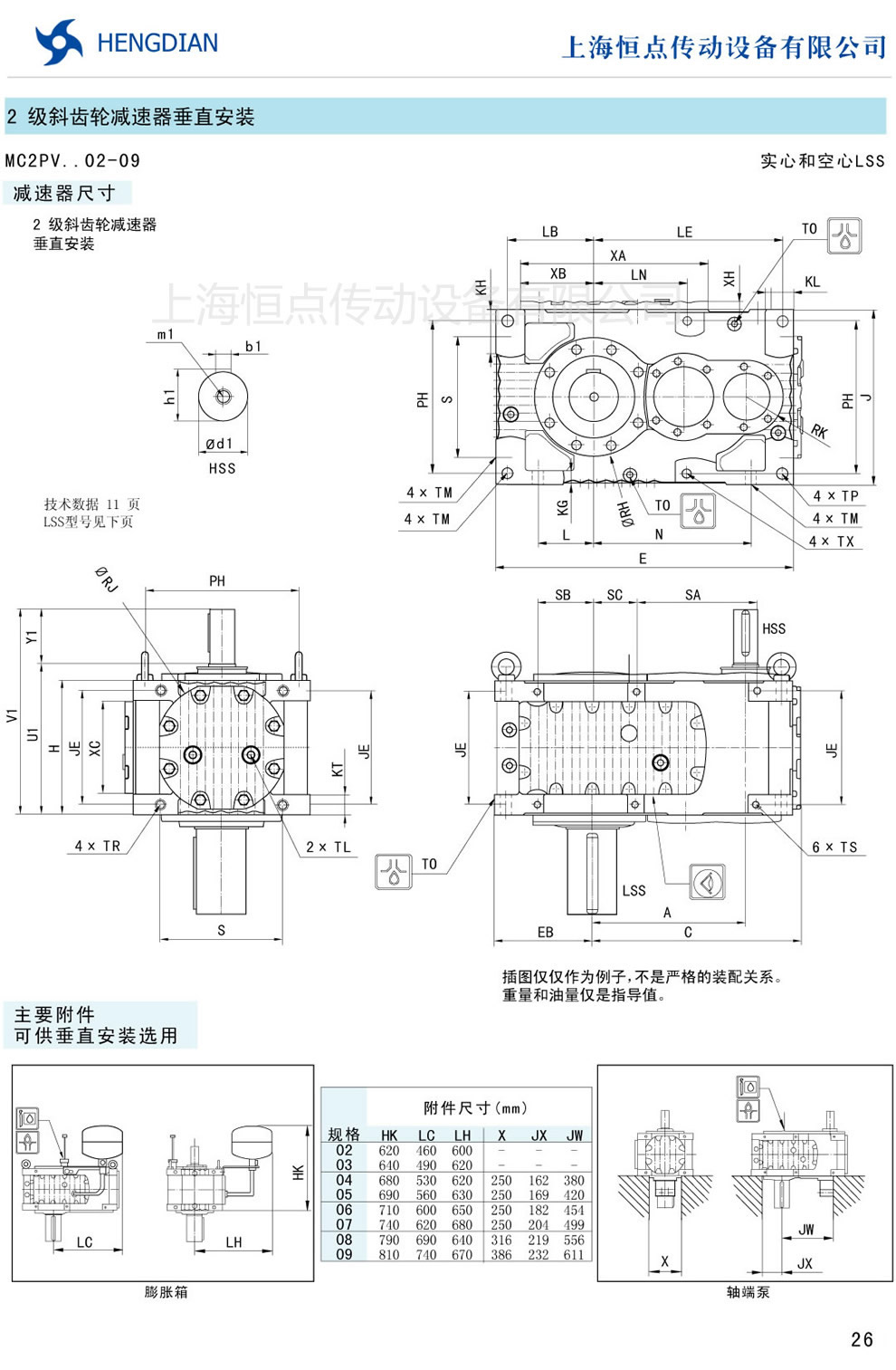 傳動能力和外型安裝尺寸/斜齒垂直安裝 - MC硬齒面減速器